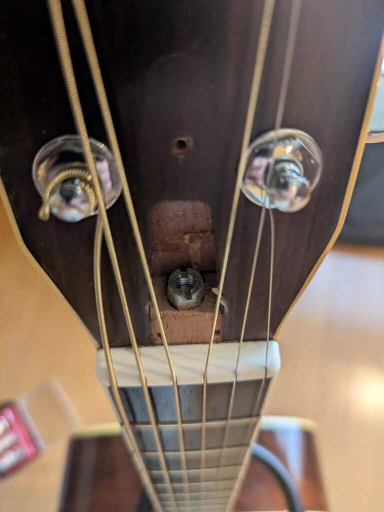 一度に10度から15度回して、弦を元に戻して、弦高を測り、ネックを何度も見る。